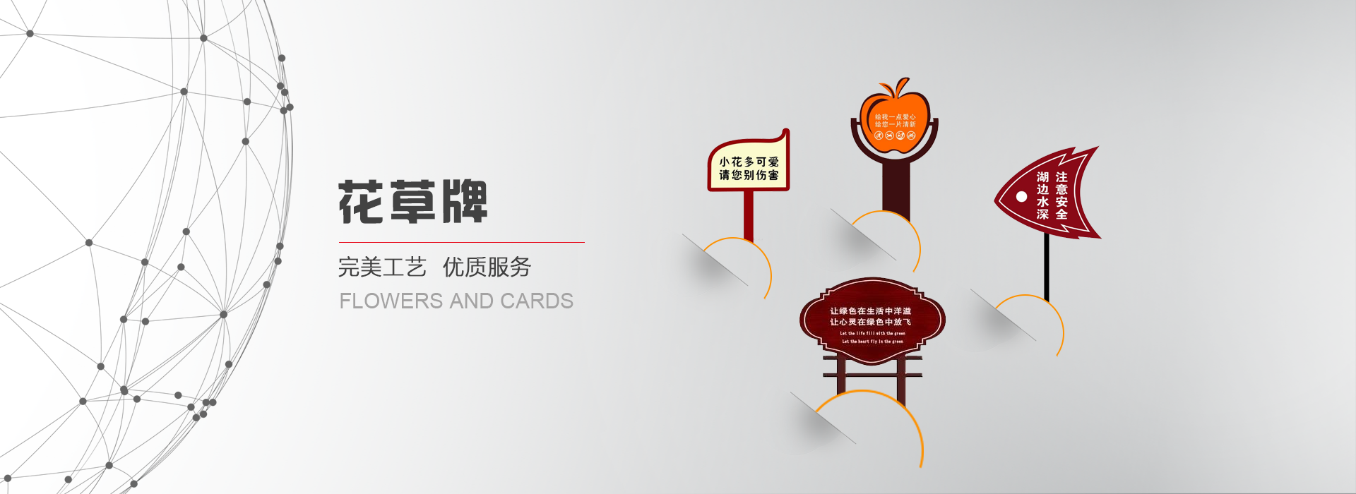 花草牌是指樹立在花草叢中用于提示愛護(hù)的標(biāo)識牌。又稱牌或草牌,屬于溫馨提示的范疇?;ú菖埔话爿^矮,一般高度在40公分到1.2米之間,是雙面,厚度一般是4公左右。有鋼板的,有純實(shí)木的,或上述材質(zhì)相互結(jié),制作工藝為: