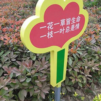 花草牌是指樹立在花草叢中用于提示行人愛護(hù)花草的標(biāo)識牌,也一些懸掛在木旁的花木簡介又稱小草牌或草牌